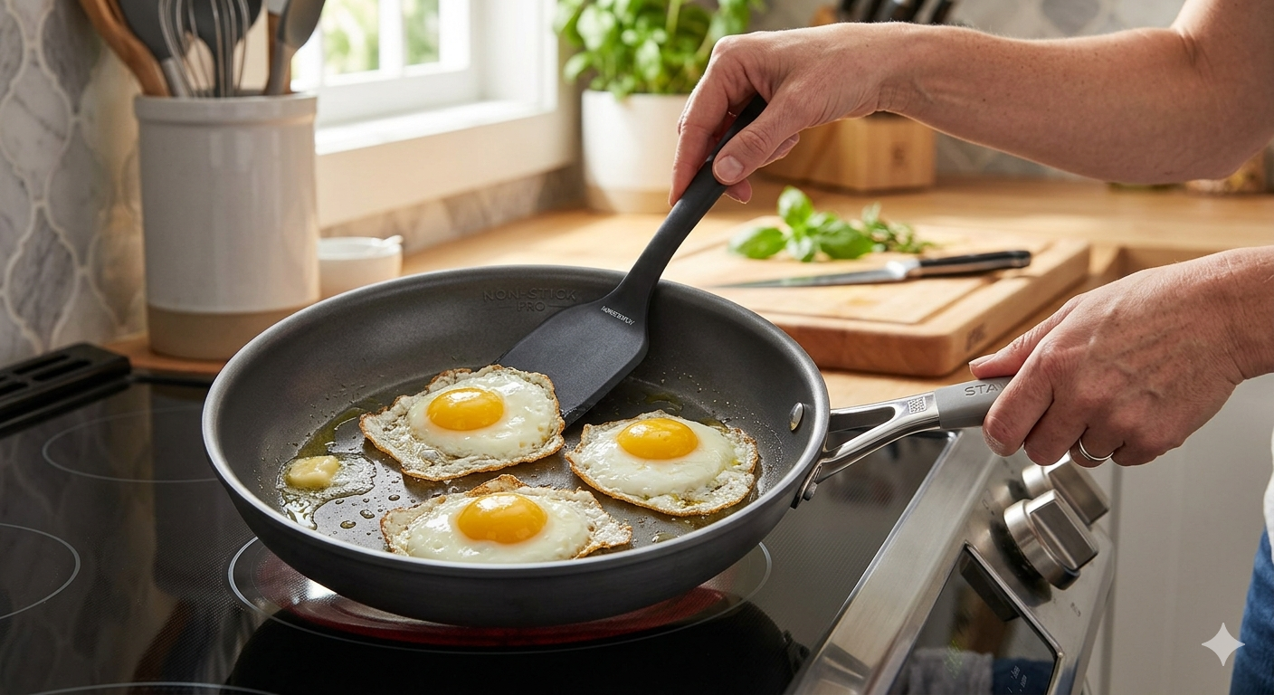 A durable 5-layered granite finish pan that is designed to last three times longer than standard non-stick cookware.